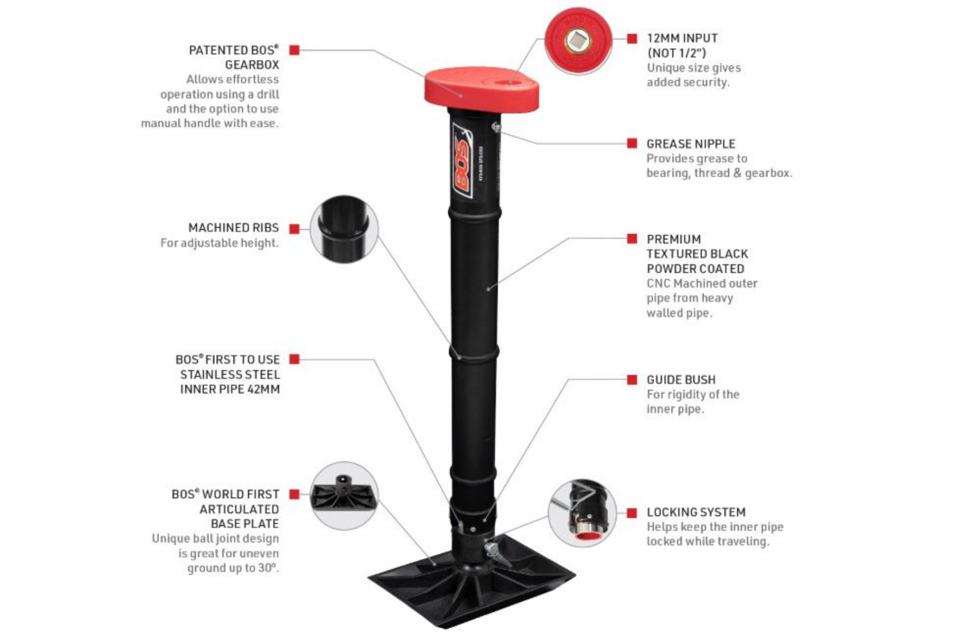 - Patented BOS® Gearbox features a unique 12mm drive set for added security and provides effortless operation with a cordless drill or manual handle as a backup.