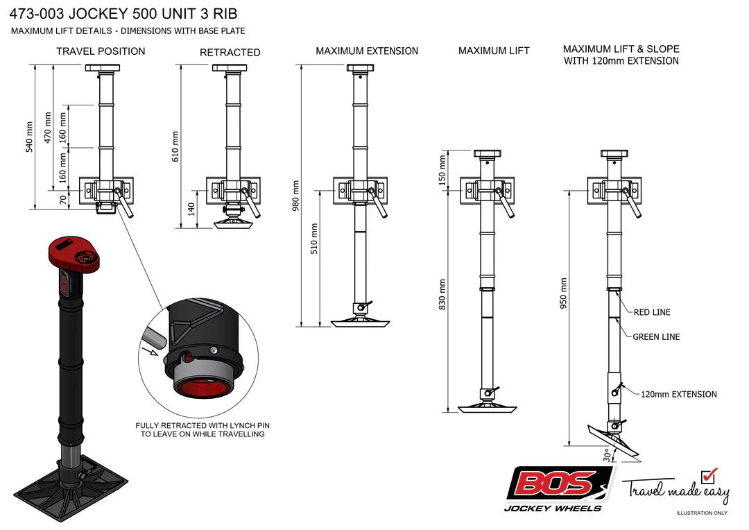 - Unit can be left on while traveling, locking it in with medium clutch setting and the BOS® traveling strap.