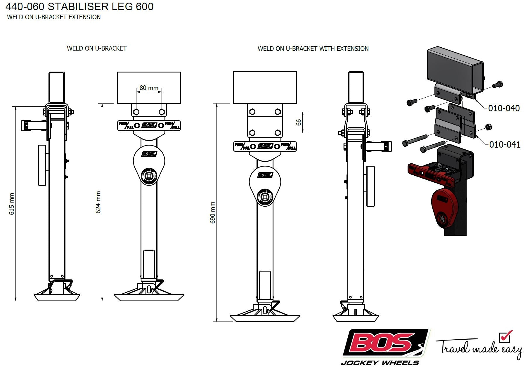 - 240mm extended vertical travel allows you to raise your caravan off the ground to change a flat tyre.