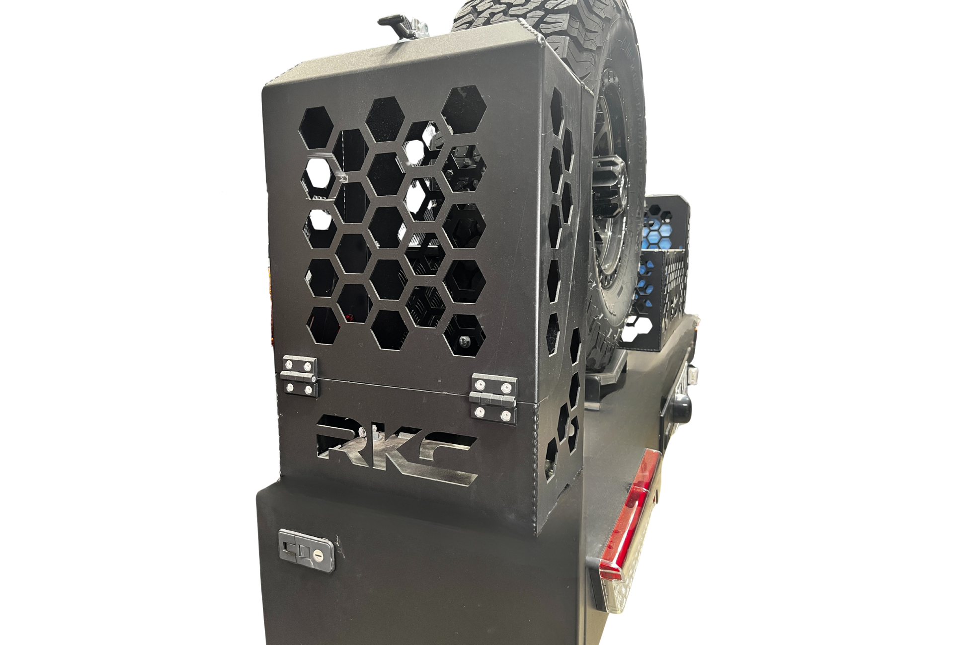 The standout feature is the laser-cut hexagonal ventilation design, which ensures airflow while maintaining the strength and security of the unit. The RKC branding is also cleanly cut into the front panel, showcasing its quality craftsmanship and Australian design roots.